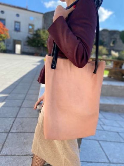Handles made of leather. Leather has long-lasting flexibility, takes and holds dyes well and also develops a well-loved patina with age. This leather bag will add instant sparkle to jeans and tops whether you’re dressed up with heels for date nights or casual for weekend lunches. The bag is the perfect size and has one zip pocket inside to keep small essentials like keys and lipsticks easily to hand when you’re on the go.