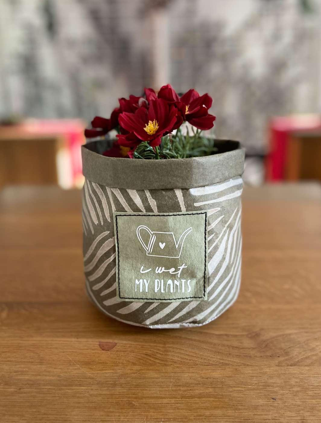 * This bag is not waterproof. Water will not hurt the bag but if you’re using your bag for herbs, plants or flowers be sure to use a small pot, vase, plant tray or container as it will leak. Do not pot directly into the product.