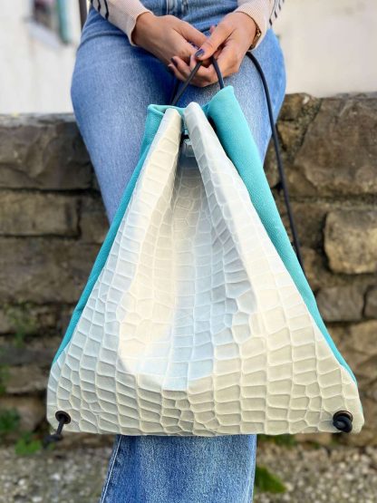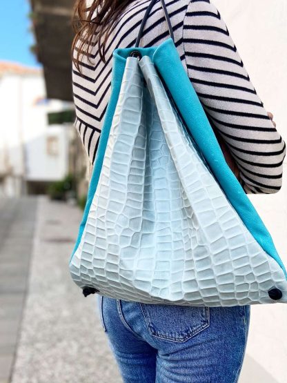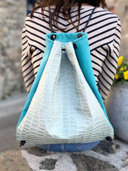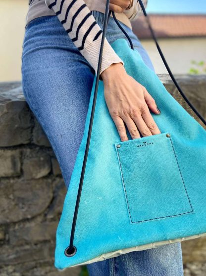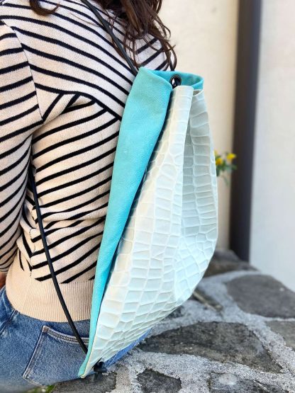 Funky blue handmade leather rucksack