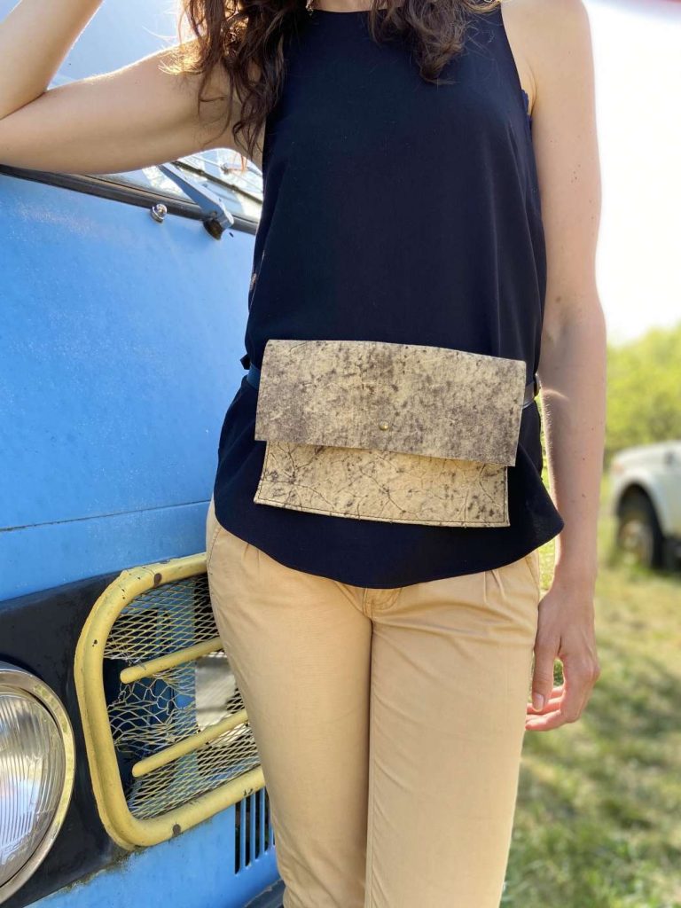 This minimalistic waist bag is perfect for hands-free carrying, like markets and festivals, walking around visiting or at concerts, traveling or just on a regularly day. This bag also does magic! With this bag you get 3 different styles! Wear it as a waist bag; cross body bag or remove the belt and you have an amazing elegant clutch. The belt is made of natural rubber and it is easily removed.
