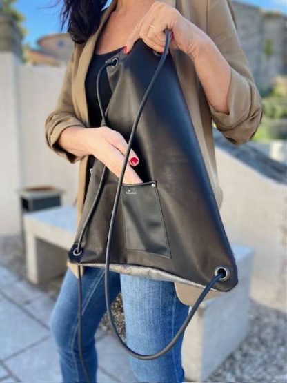 This rucksack is unique, handmade and made of high-quality leather. I’m sure you all know the feeling when your phone is ringing and you want to answer as quickly as possible and you can’t find it between all other stuff in the bag! Sooo frustrating! Well, we’ve made a step forward here. We created a pocket for your mobile on the back of the rucksack… so you answer in a second. We know what you are thinking. Can somebody steel it? Nope! It is perfectly safe on your back.